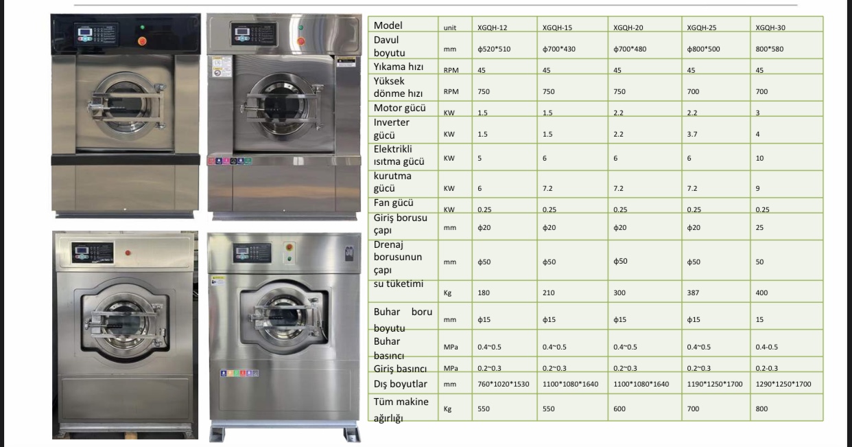 Dayanıklı ve uzun ömürlü yapısı sayesinde yıllarca sorunsuz kullanım sunar. Modern teknolojisi, hem çamaşırların kalitesini korur hem de işletmenizin maliyetlerini düşürür. Bu makina, güç, tasarruf ve profesyonel kaliteyi bir arada isteyen işletmeler için ideal çözümdür.